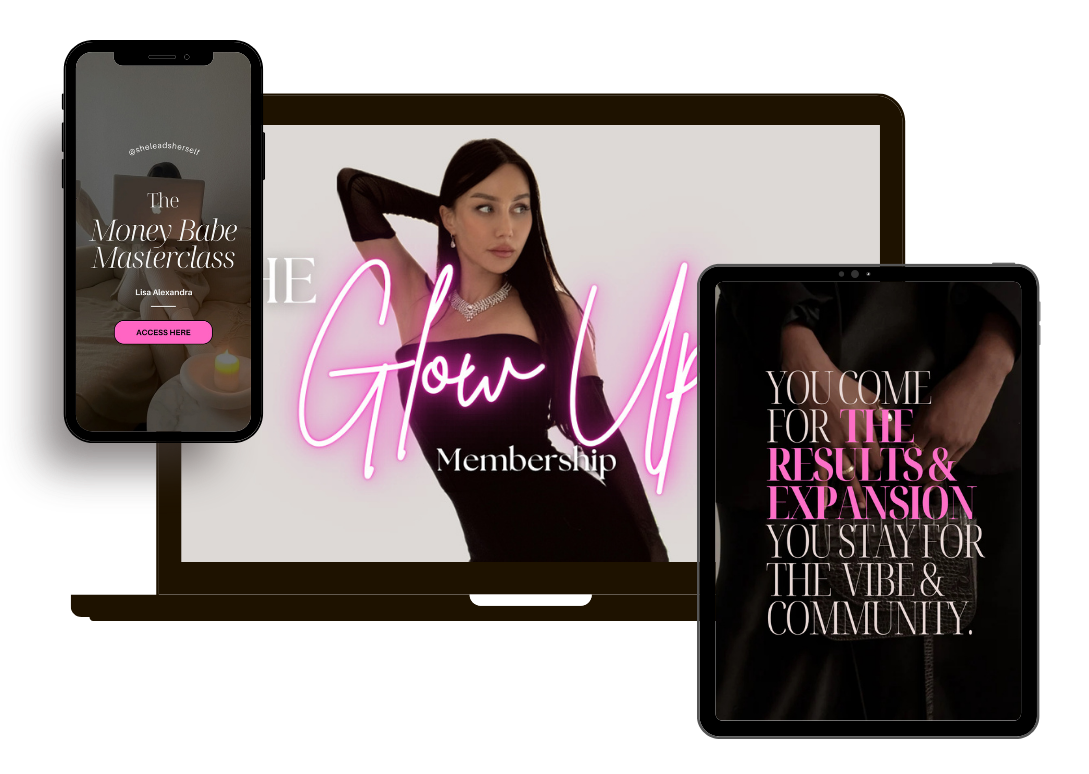 The Glow Up Membership is our bestselling manifestation school with daily audio drops from me straight to your phone inside our private Telegram channel, a thriving community of powerhouse women creating their dream lives, and access to over 30+ high level exclusive trainings you won't find anywhere else.