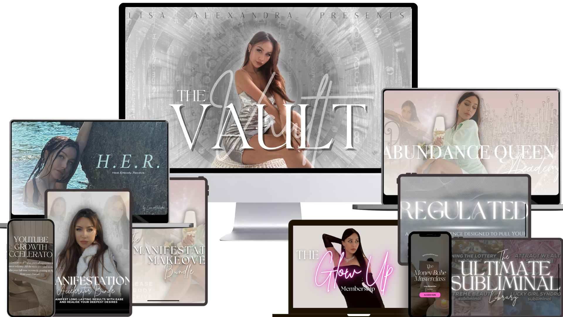 The Vault includes my signature Abundance Queen Academy, the Manifestation Makeover Bundle, the Manifestation Accelerator Bundle, Youtube Growth Accelerator, the Ultimate Subliminal Library and my brand new program HER: Heal, Embody, Receive – plus one full year inside my GLOW UP membership when you select pay in full at checkout.